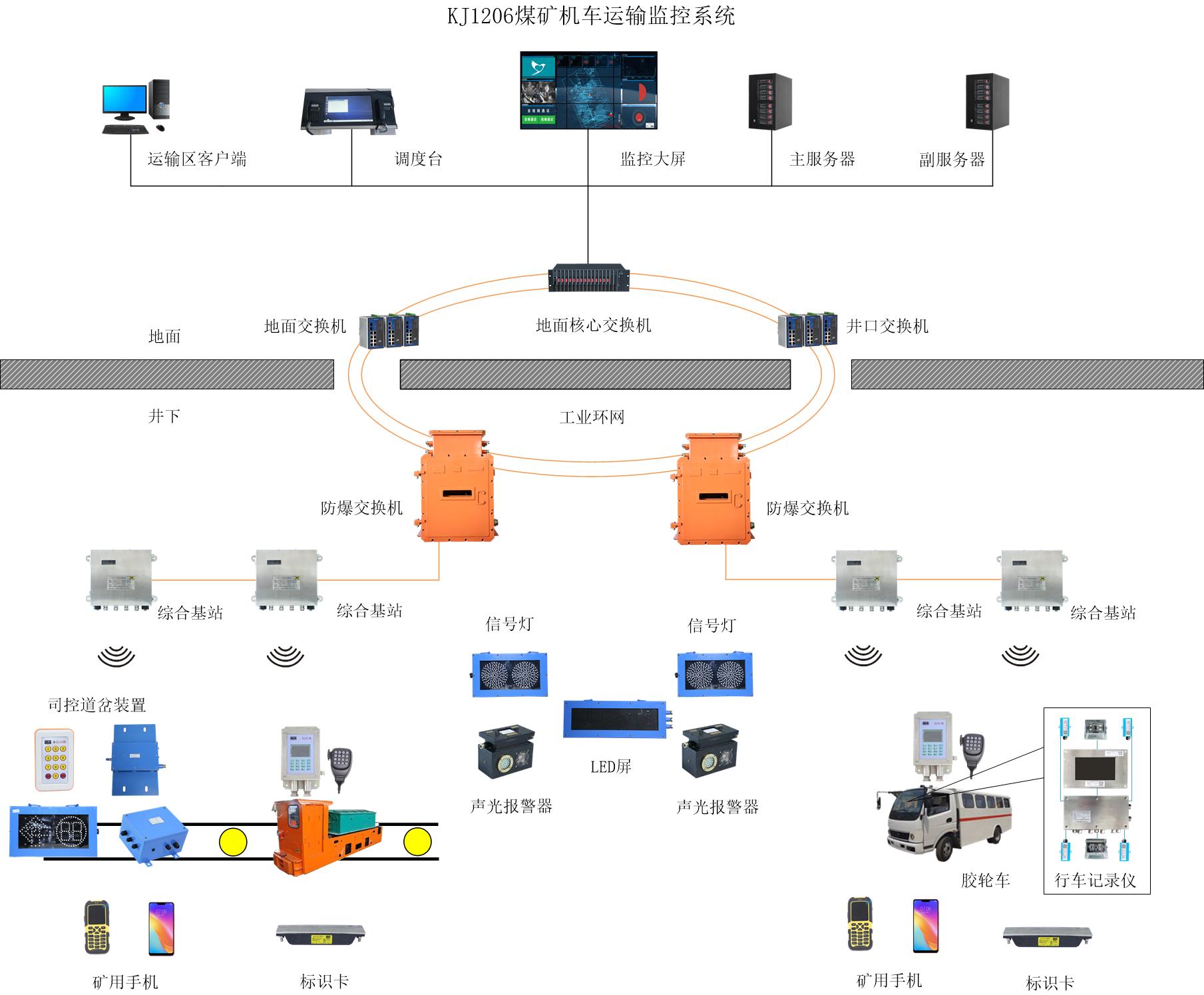 煤礦單軌吊無人駕駛運輸監(jiān)控系統(tǒng)是以無線網(wǎng)絡(luò)+現(xiàn)場總線控制結(jié)構(gòu)工控網(wǎng)絡(luò)為核心的單軌吊電機車運輸安全監(jiān)控和自動調(diào)度,無人駕駛系統(tǒng),它依靠無線接收網(wǎng)絡(luò)檢測車輛的運行狀況,由就近控制分站傳送到運輸調(diào)度中心,在圖形顯示設(shè)備上以模擬圖顯示出來,供調(diào)度人員掌握,并且依靠計算機強大的記憶、判斷和運算能力,將調(diào)度人員的調(diào)度意圖分解為具體的控制指令,控制執(zhí)行設(shè)備完成道岔位置與進路開閉等調(diào)度動作。