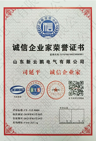 誠(chéng)信企業(yè)家榮譽(yù)證書